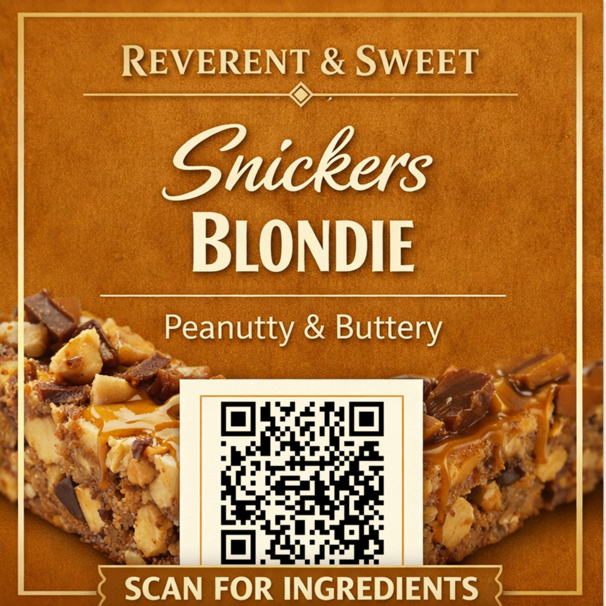 Brown sugar, butter, eggs, all-purpose flour (wheat flour, malted barley flour, niacin, iron, thiamine mononitrate, riboflavin, folic acid), Snickers bars (milk chocolate [sugar, cocoa butter, chocolate, skim milk, lactose, milkfat, soy lecithin], peanuts, corn syrup, sugar, palm oil, skim milk, lactose, salt, egg whites, artificial flavor), vanilla extract, baking powder, salt.